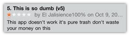 It's infuriating to be on the receiving end of a comment like this. There is nothing constructive here; nothing that would even partially suggest why this person is unhappy or what we should do to fix their problem. But this is generally the kind of feedback you're going to get from public app stores.