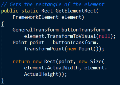 The dialog that is generated for pin / unpin action requires the rectangle defined by the developer. In general the GetElementRect method will look like this: