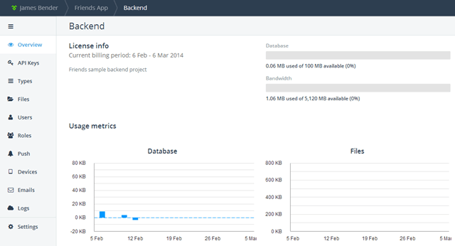 Figure 1 – The Telerik Backend Services portal enables you to manage several types of services from one place