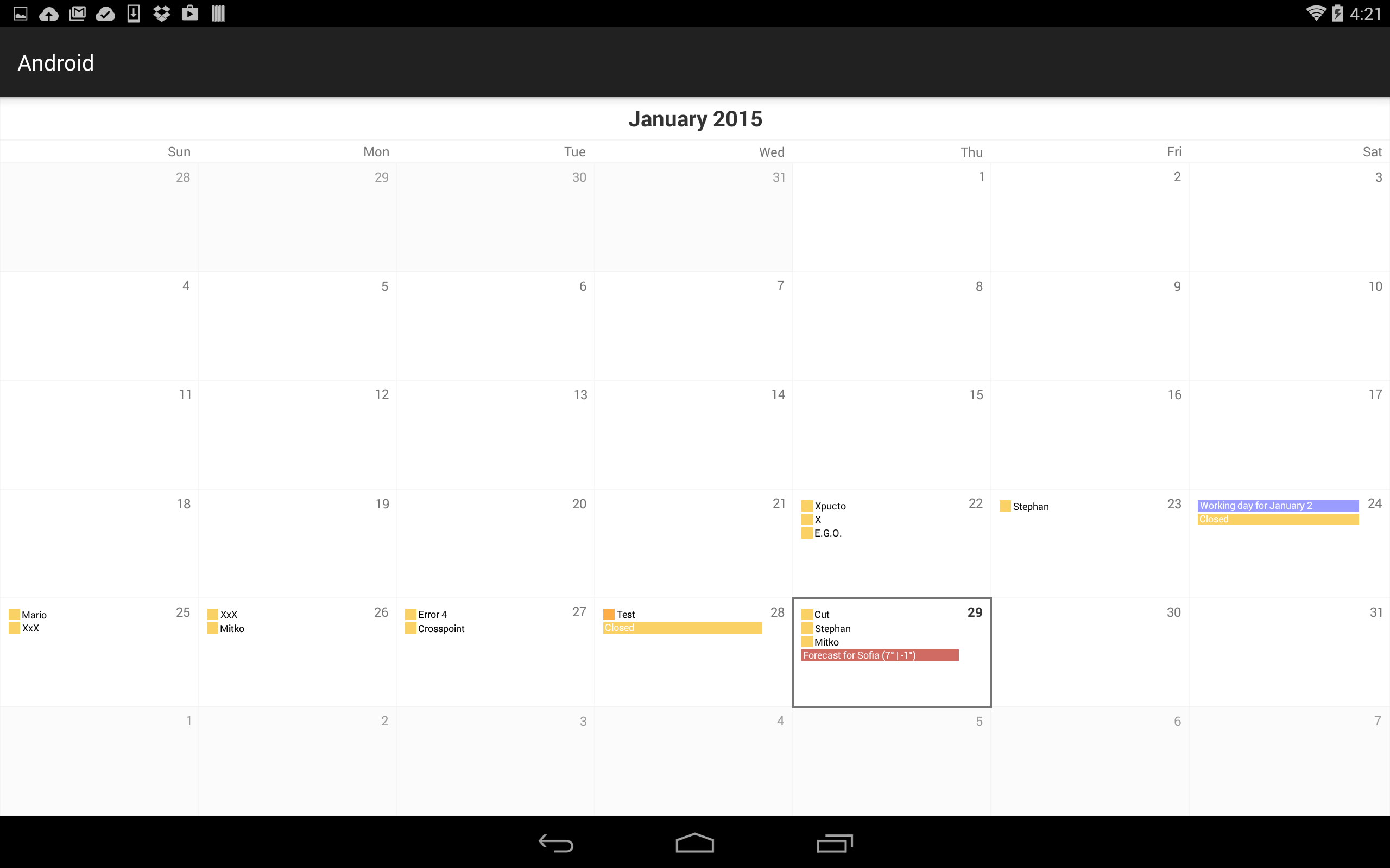 Reading events and appointments from the device with ease was high on the wishlist of developers using Telerik UI for Android. The code snippets below highlight some of the upcoming functionality.