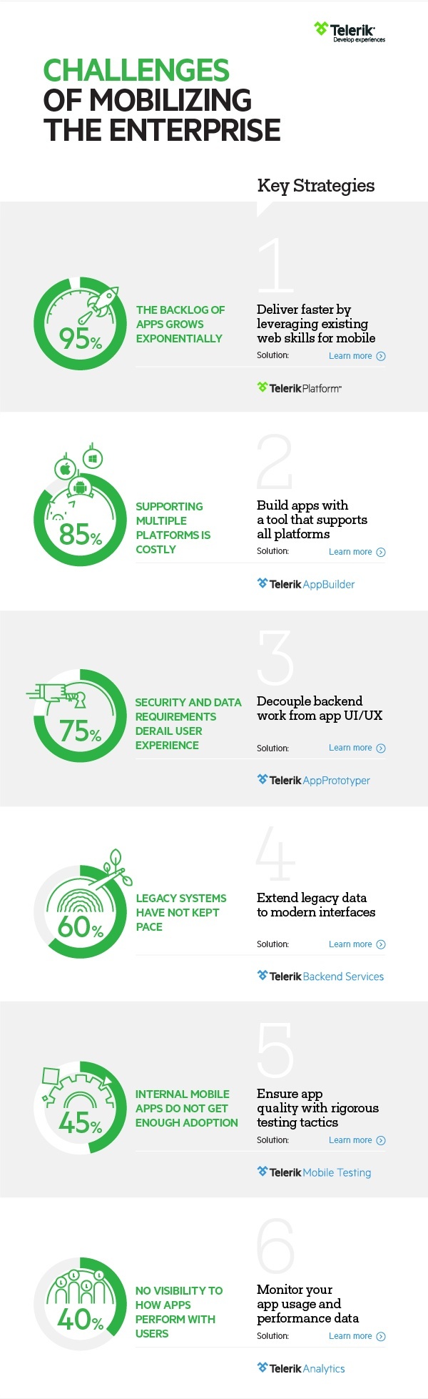 Creating mobile apps to meet the enterprise's needs is a new mandate of IT these days. As with all new waves of technology, it comes with a set of challenges. We surveyed a number of Enterprise Mobility Architects at an event this past month and asked them about their top challenges. This inspired us to put together an infographic of top challenges mapped to our recommendations.