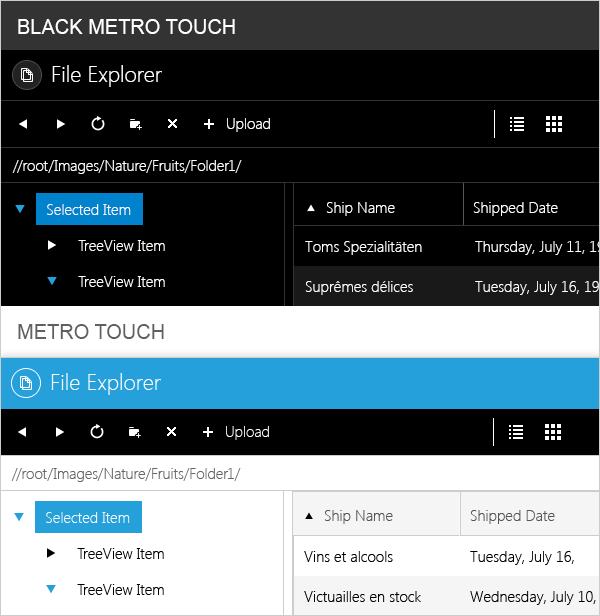 BlackMetroTouch is a part of our Metro skins family. It is based on the MetroTouch theme and has the same specifications in terms of size. The color scheme is black, grey and blue, however. It follows the simple design principles of the Windows 8 style and all guidelines for a skin created for touch-enabled apps - enlarged dimensions provide a friendly clickable area, bigger font size and UI elements.