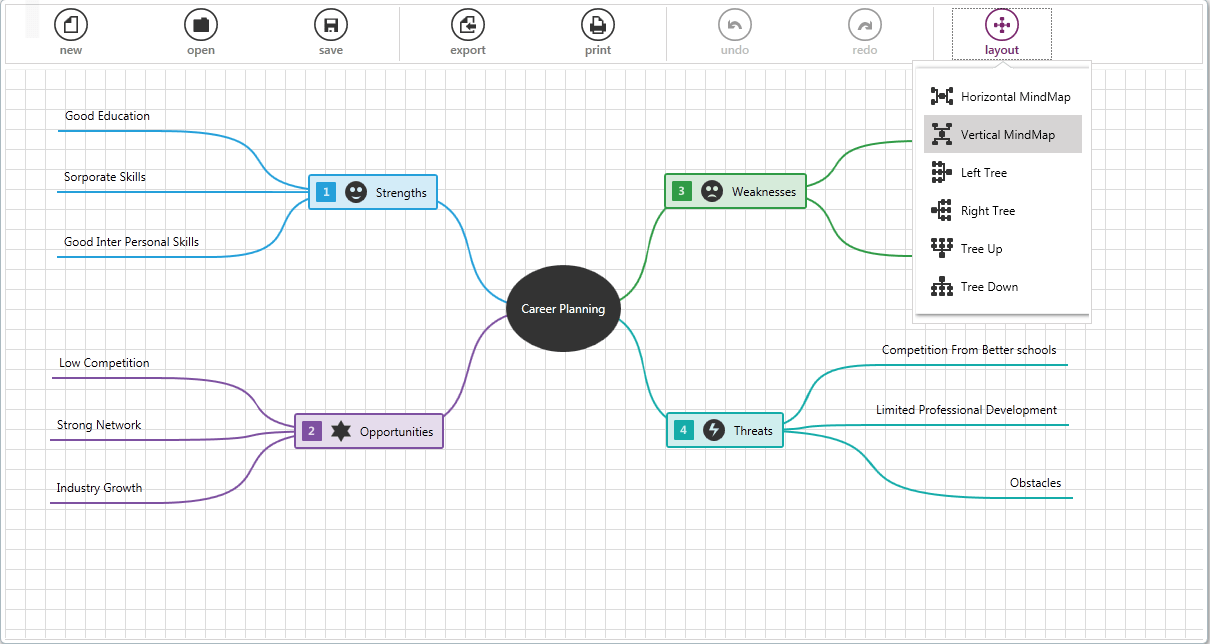 - Mind map layout