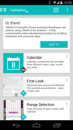 Telerik Examples is available for download from Google Play. The source code of the app is available on GitHub.