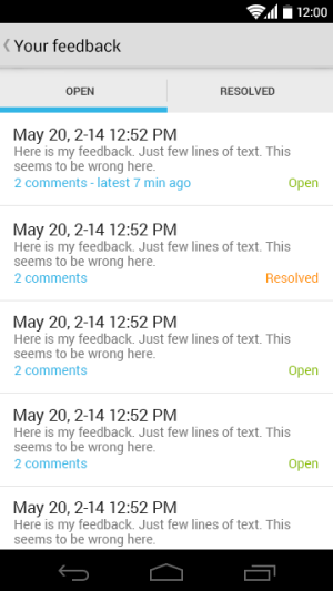 The second addition to the suite is Telerik AppFeedback for Android. AppFeedback enables two-way communication between the application developer and the user. The component shortens the gap between the developer and the user by providing an intuitive way to send and receive feedback. AppFeedback is a native Android control that allows end users to provide feedback by making a snapshot that is sent to a remote secure location and is available for review by the developer immediately. The control easily integrates with AppFeedback projects that are an integral part of the Telerik Platform.