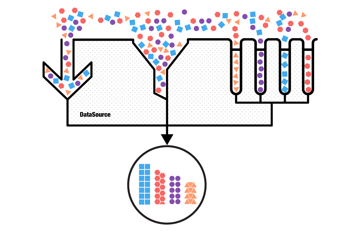 The Telerik DataSource is a non-UI adapter that offers an easy way to sort, group and filter in-memory data. We’re in fact using the DataSource internally in the ListView. The DataSource is best used as a ‘hub’ where data is obtained, reshaped and sent to a view to be displayed.