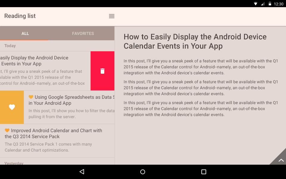 The Q1 2015 release of UI for Android is the next step in our quest to provide developers with common tools and practices for native mobile development.