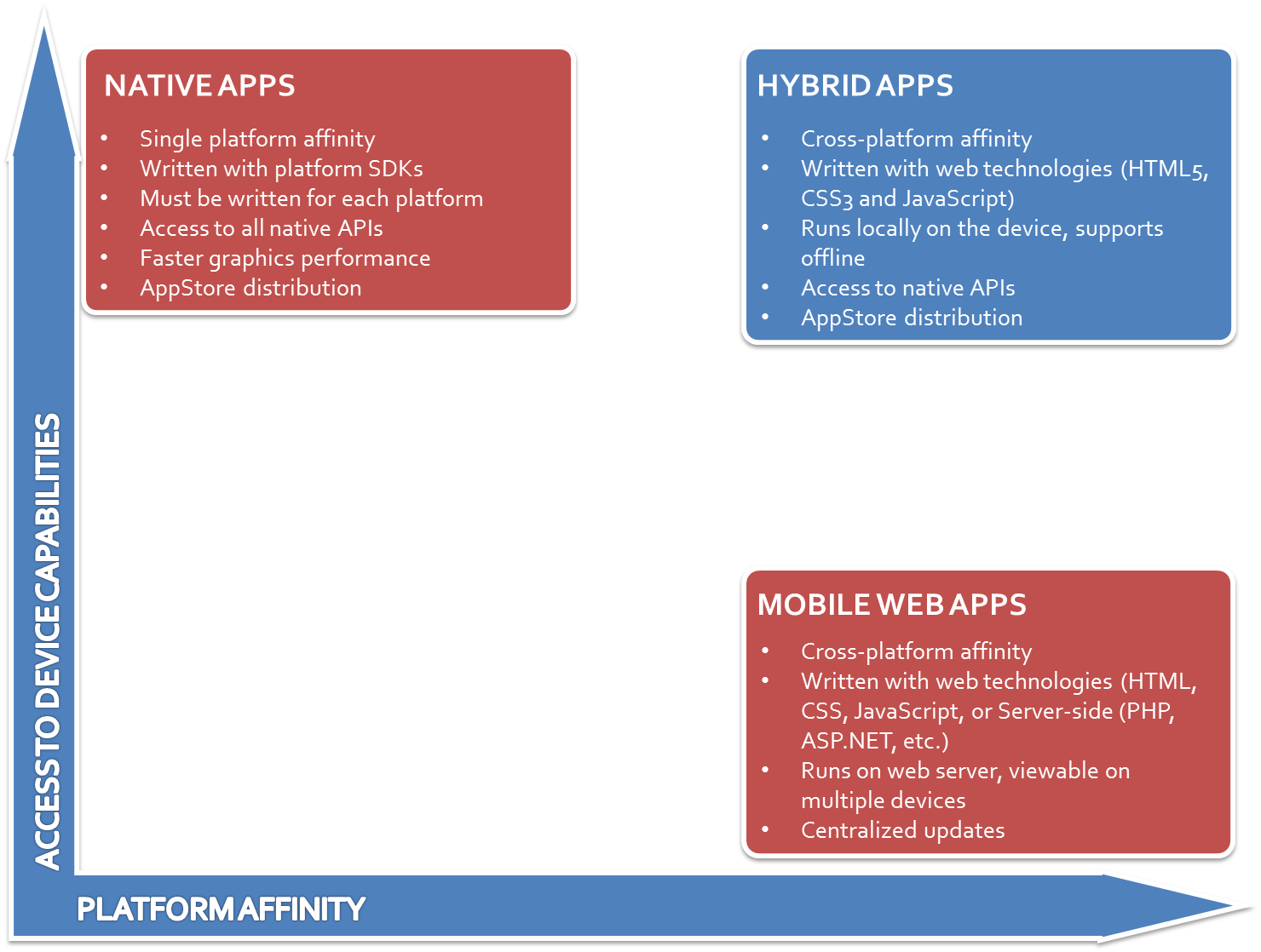 Here is a graph that highlights the differences in native, hybrid and mobile web applications.