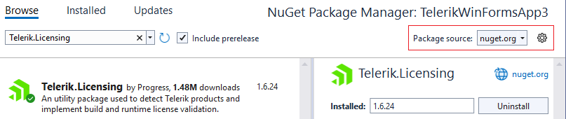 I am trying to install the Telerik.Licensing package from nuget.org, as per your instructions.