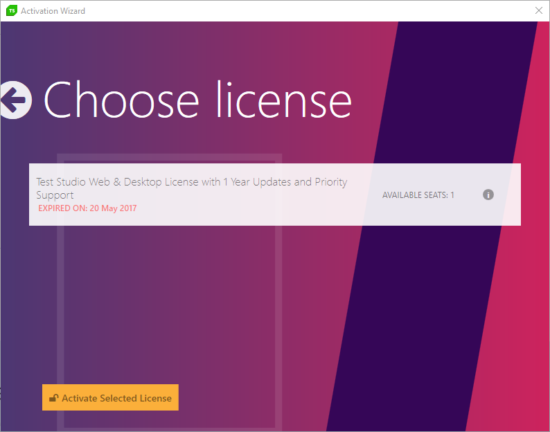 If you will be activating a license, which was active some time ago, you need to ensure the version of Test Studio, which you have corresponds to the time when the license was last active.