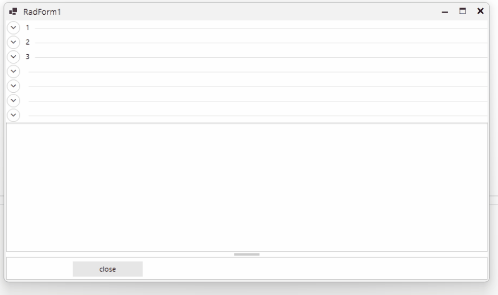 - Start adding RadCollapsiblePanels as you started. Let's say you add 1,2,3 panels.