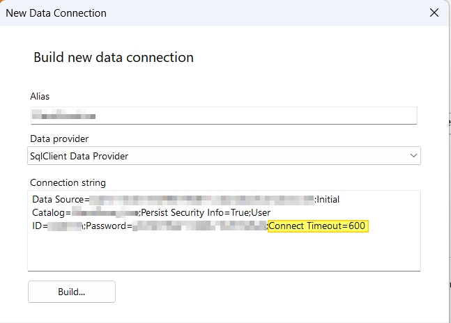 I have built a report on the Telerik Standalone Report Designer, it calls a stored procedure and the SP will complete by around 5 minutes 33 seconds. I have specified the Connection Timeout to 600 seconds in the Connection String (see attached), but when I preview the report on Telerik Report Designer and Telerik Report Sever, I still got the error message "Execution Timeout Expired. The timeout period elapsed prior to completion of the operation or the server is not responding.".