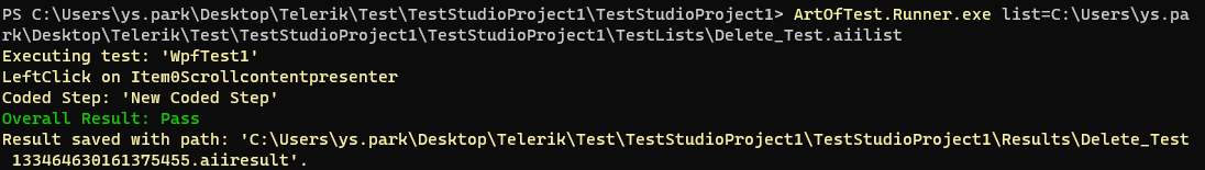 working folder> ArtOfTest.Runner.exe list="D:\<fullPathToTheProjectRoot>\TestLists\Delete_Test.aiilist"It's working for the full path. Thank you.