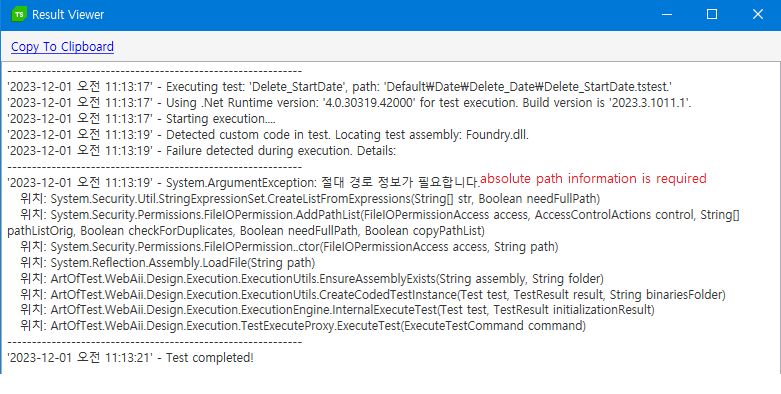 > ArtOfTest.Runner.exe list=.\TestLists\Delete.aiilist Compile Successful: Executing test: 'Delete_StartDate' Overall Result: Fail Result saved with path: '.\Results\Delete 133458704024418978.aiiresult'