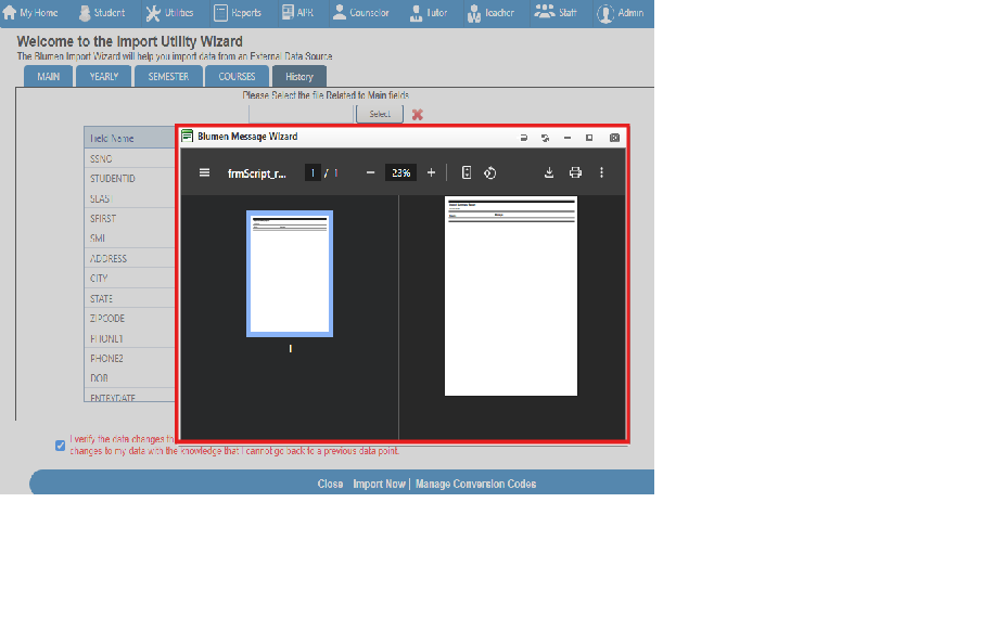 Up to here working good, Script Import Mapping functions correctly in both Internet Explorer and Google Chrome.However, an Issue occurs: after viewing the report, when navigating to the history tab, the report view reappears, which is inconsistent with the existing functionality. The report view in the history tab does not disappear until the X button is clicked to close the current main field details.