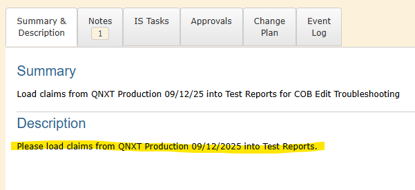 <div>Please load claims from QNXT Production 09/12/2025 into Test Reports.</div>