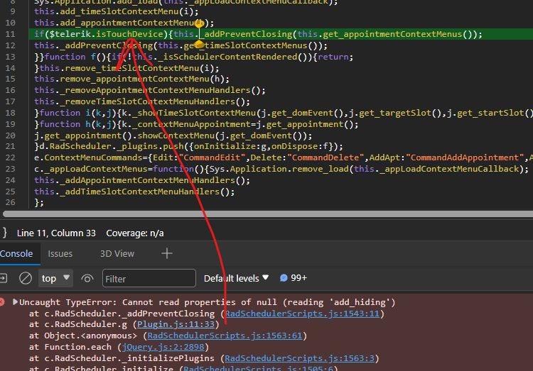 Telerik.Web.UI.WebRe…1f%3a619d6d01:13732 Uncaught TypeError: Cannot read properties of null (reading 'toJSON')