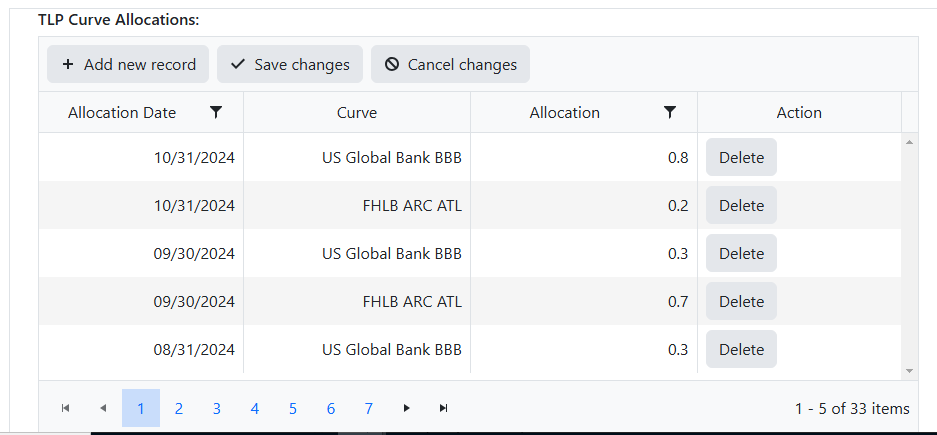 Suppose if the user clicks on 1st row delete button then for the Allocation Date 10/31/2024, it has two records so it should delete the first two rows.
