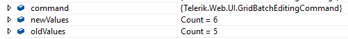In RadGridEntries_BatchEditCommand I'm capturing the old and new values: