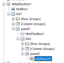 - In my DetailSection I have List (21cm width) that contains a List (21cm width) that contains my SubReportItem (21 cm width)