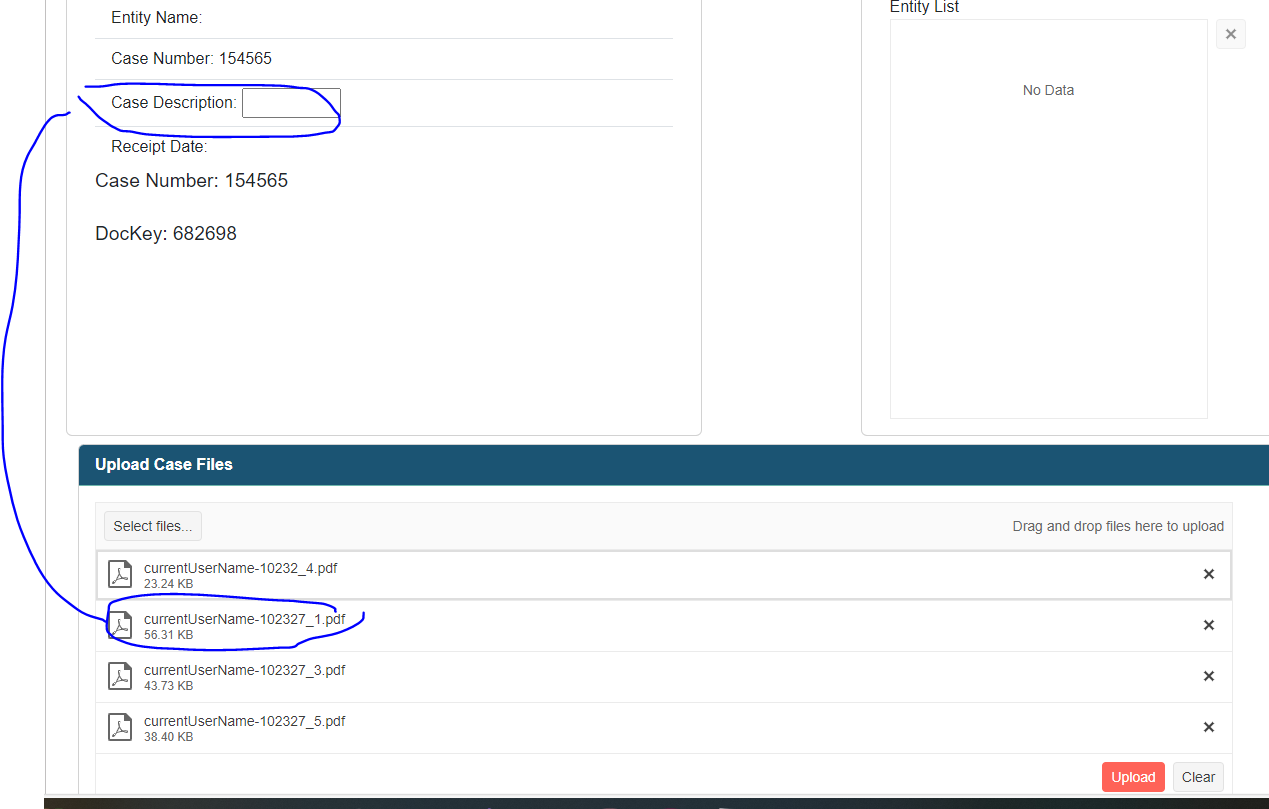 Example, I have data like a description for each individual files that I want to send with it when I upload and write to the database. How do I bind that data to the file?