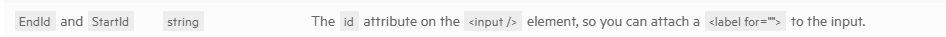 The DateRangeSelector does not offer any properties that allows us to change the Label for start or end date on the TelerikDateRangePicker.