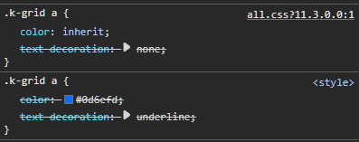 In my specific case I have a grid and I want the values in one of the columns to be links but using an anchor element in a grid doesn't underline and turn the content blue so I added css into my style tag in my component: