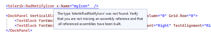 I'm trying to add a RadNotifyIcon into my telerik wpf project, but it keeps throwing the error below in xaml file