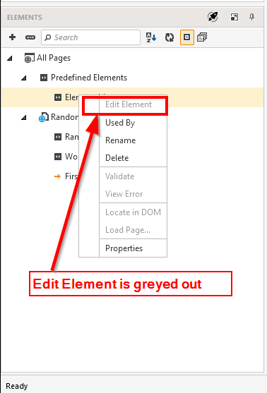 I have gotten to the point where it would be useful to create a custom element. However, I can not perform edits on custom elements I create, such as setting the find logic. I have read the documentation and I can see no reason why this would be. Please see screenshots for my issue.