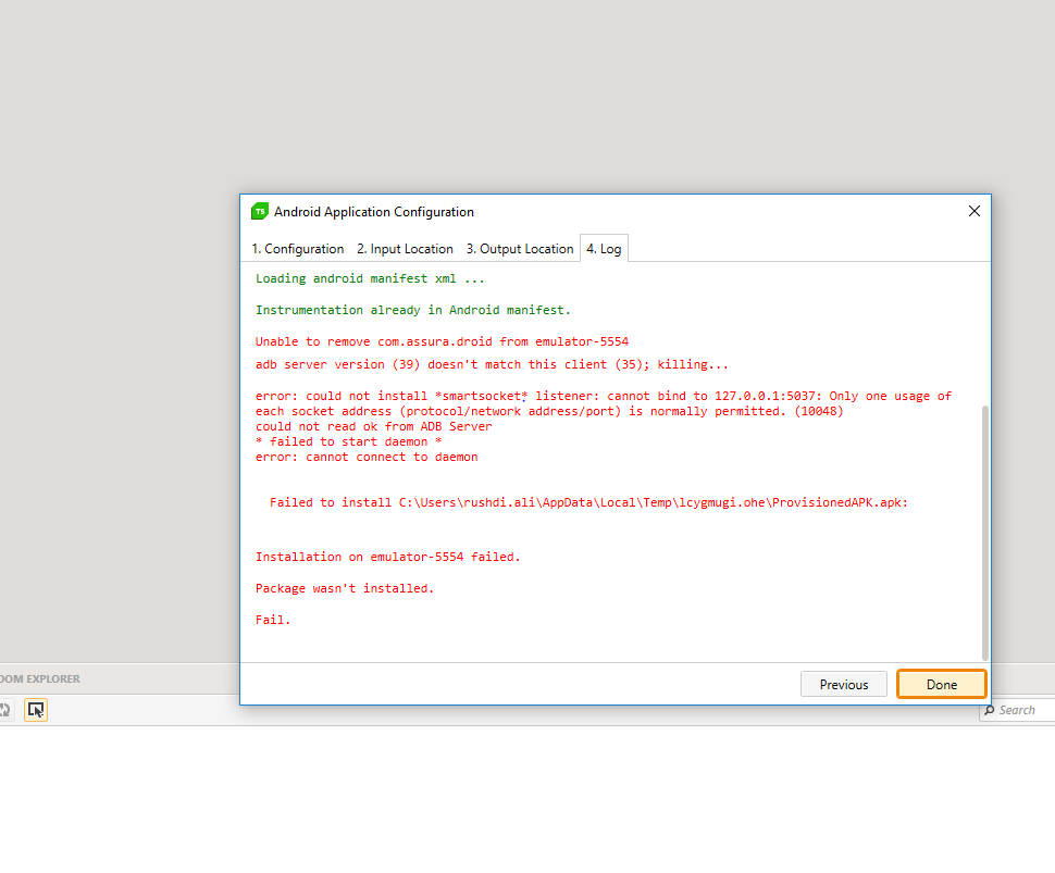 3. Emulator problems. Unforetuentaly this is a complicated problem because we rely on adb.exe which is the only way we can access android devices and we have no control over its functions. From what I see in the screenshot, there is some kind of a version mismatch between the adb.exe and the API level of the android emulator. There are a lot things that could go wrong and i can recommend three solutions: