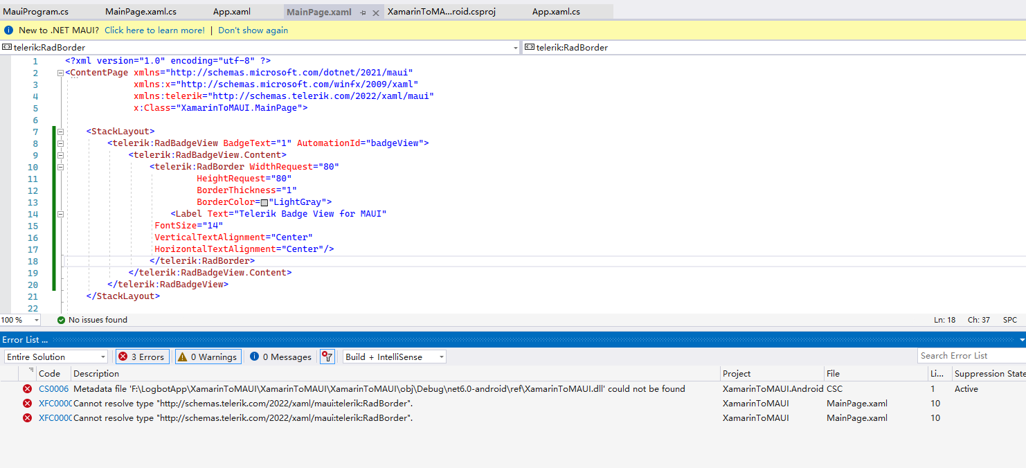 There seems to be an issue with configuring the project and our references - can you provide more details on how you've added Telerik UI for .NET MAUI reference, did you use the Telerik.UI.for.Maui nuget package or added the assemblies? Have you updated to the latest .NET MAUI release and latest Telerik UI for .NET MAUI, respectively?