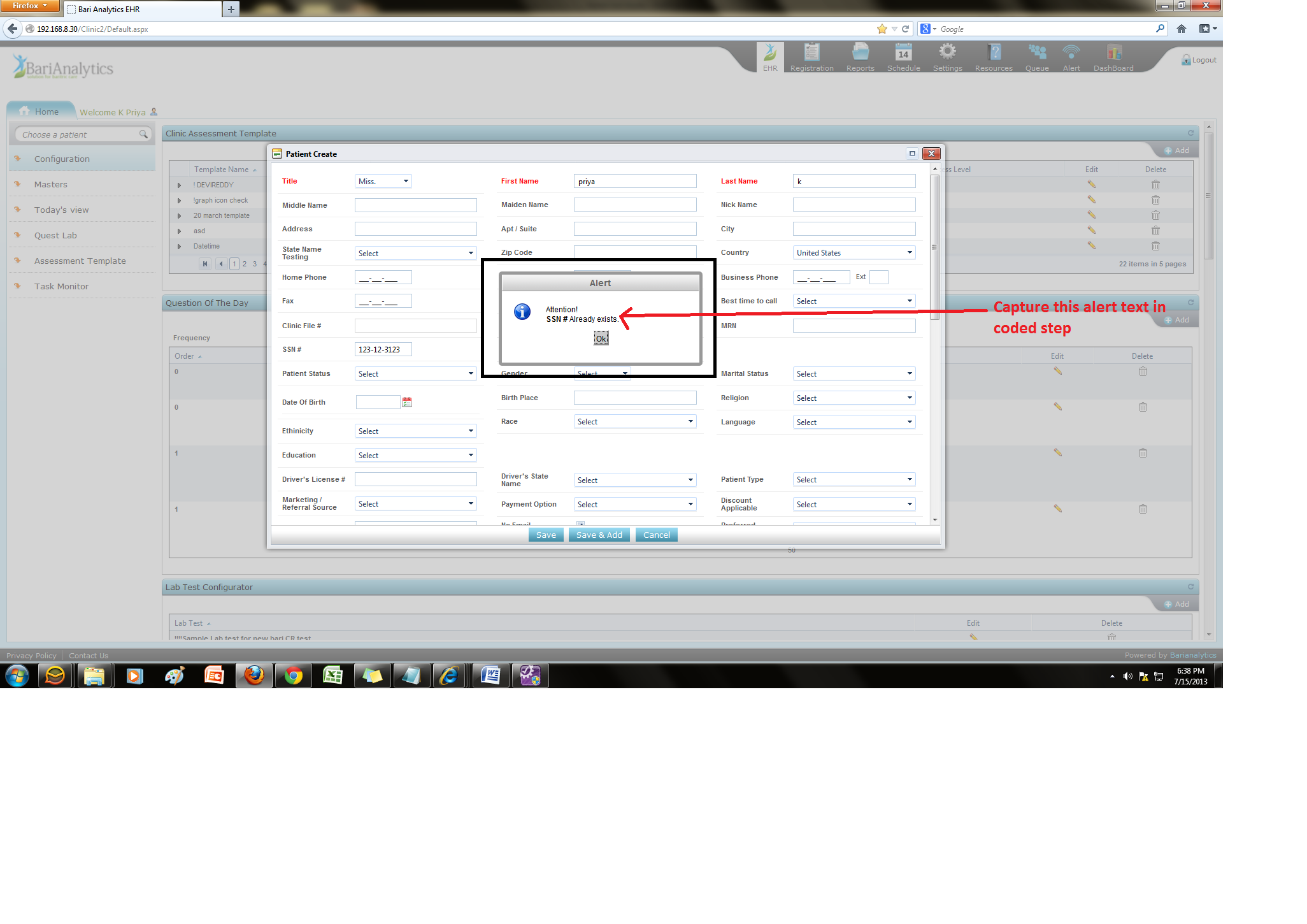 I want to compare the alert/message box text in coded step and then compare that alert text with the excel sheet column text to execute the testcase.