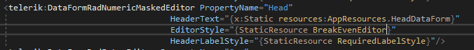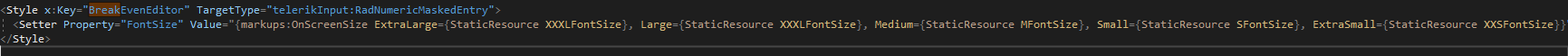 I am trying to change the font size in my data form by creating a style in the styles.xml file. I was able to set the font size in a DataFormDatePickerEditor and DataFormRadEntryEditor, but not for the DataFormRadNumericEntry. I've tried targeting a label, a RadNumericInput, RadNumericEntry, Entry, RadEntry, and DataFormRadNumericEntryEditor for my style, but to no success. I would also like to set the font size for the validation message from the data annotations. I have attached below screenshots to clarify. Am I targeting the wrong type? Or is there a workaround to change the font sizing?