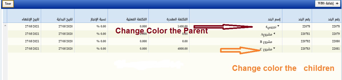 How to changes the color(background ) of Parent and children in the radGantt(Treelist View)?