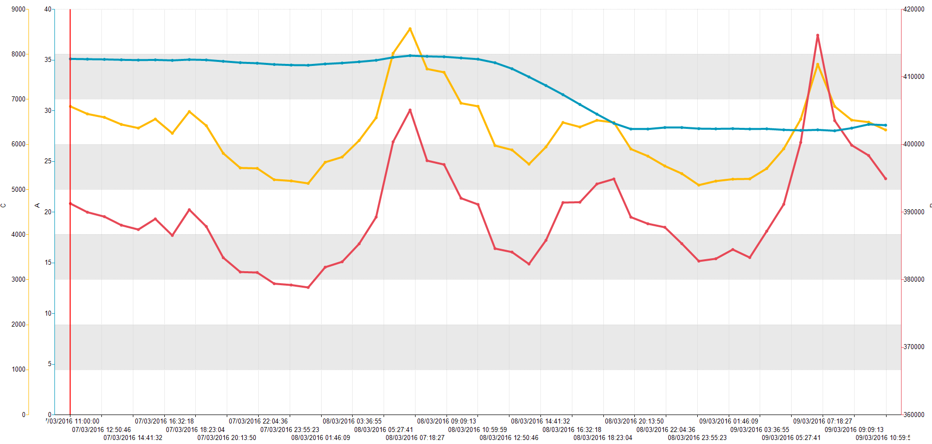 Is it possible to have multiple grids in your chart when working with multiple axes? I only get the grid for the last axis, which is the yellow one in the image below. I would like to have a grid for each axis.