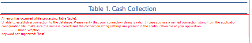 Please refer to PostgreSQL connection strings - ConnectionStrings.com and ensure that you are passing a valid connection string. Check whether the Report Parameter's value is exactly as you would expect.