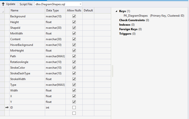 In addition, you can download the whole demos application and examine the used DiagramShapes and DiagramConnecions tables of the used Telerik.mdf database form your Telerik account here: