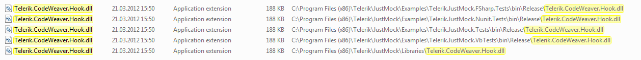 Unit Test Adapter threw exception: Could not load file or assembly 'Telerik.CodeWeaver.Hook, Version=1.0.0.0, Culture=neutral, PublicKeyToken=87210992829a189d' or one of its dependencies. The system cannot find the file speccified..