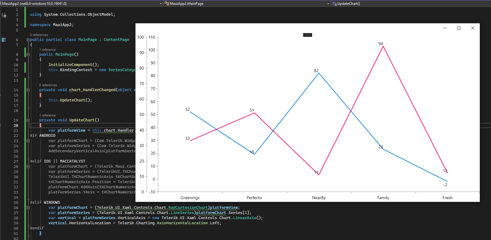 I have attached the xaml and cs files used for this approach and an image on WinUI. In general if you want to further customize the chart you need to use the native chart controls. The chart is a native control, so we have iOS/Android and WinUI charts and they follow the platform guidelines. So there isn't a 100% matching across the platform.