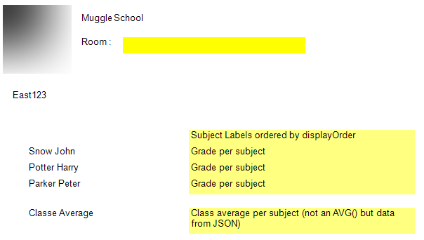 I've included the JSON sample that I'm using below. As you can see, we have a school, which contains classes, which contains a list of students and a list of subjects. Each student has evaluations : a grade in one of the subject of the class. Each subject has a display order and a grade average of the class.