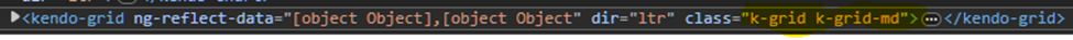 When I inspect a Kendo UI component, like kendo-grid, in dev tools, no CSS is displayed. I can see that there are css classes applied to the component, k-grid and k-grid-md, but there's nothing displayed in dev tools for those css classes. I verified that I can create my own component, put it on my home component (as I've done with Kendo UI components), apply css classes to it and that css shows up in dev tools as I expect when I inspect it. So it only appears that I can't see the css for Kendo UI components. What do I need to do to get the css to show up?
