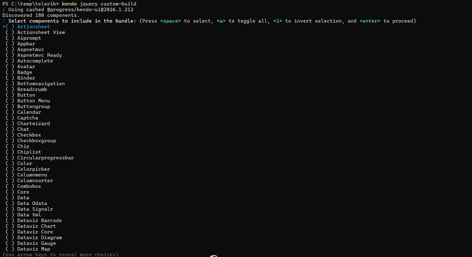 Starting with version 2026.1.212 for Kendo UI for jQuery, the new local custom builder through the cli has replaced the prior custom download builder. Please feel free to utilize the new custom download builder for the latest custom-built version of Kendo UI for jQuery.