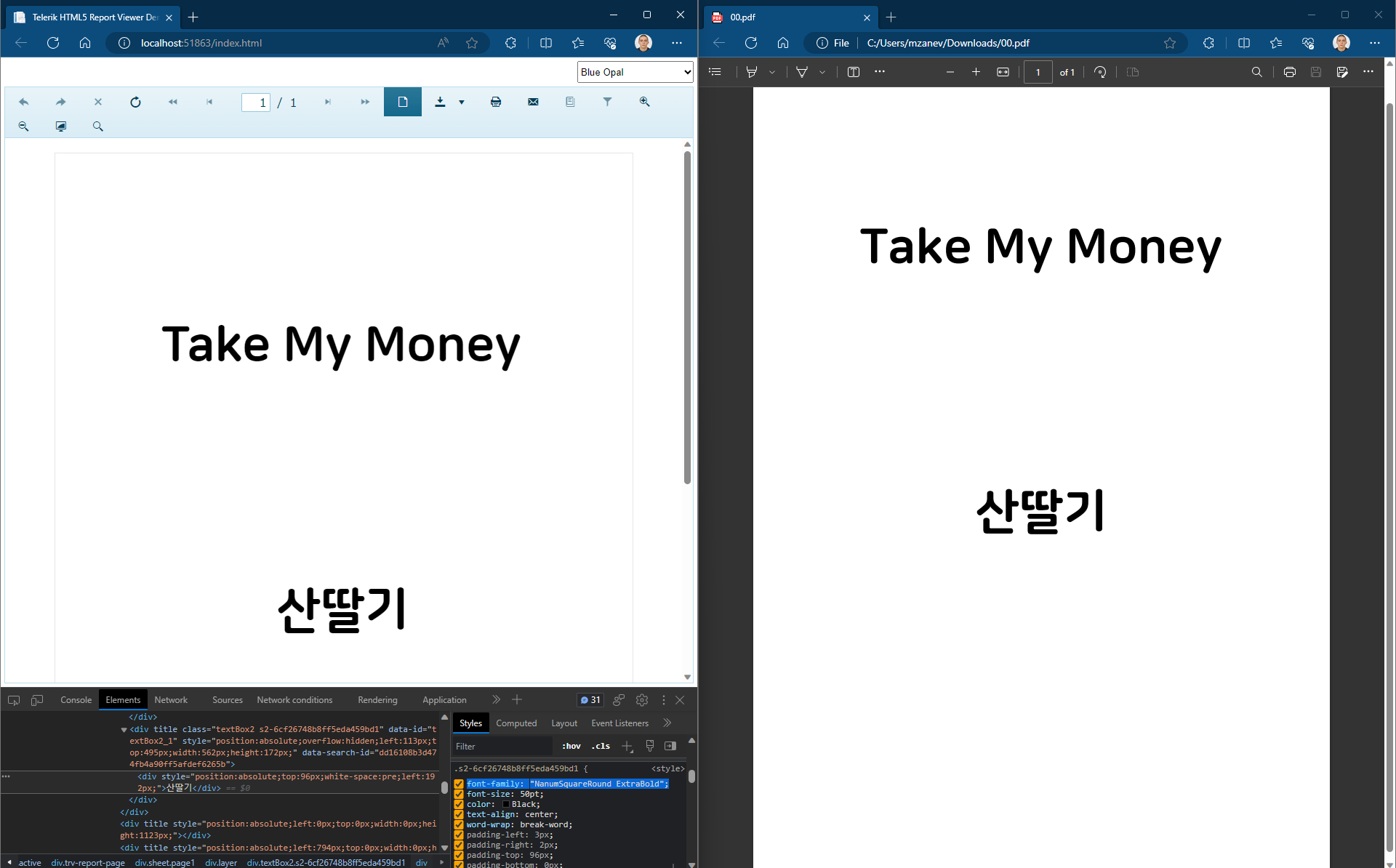 1. ReportServer installed and booted a font file on a computer distributed with IIS, but the font was applied by replacing it with Malgun Gothic, the default Korean font for Windows, instead of the Nanum Square RoundEB font for .trdp