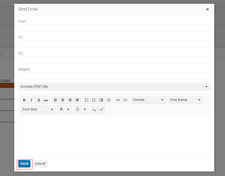 Is it possible to implement the logic for handling the "Send" button click in the email sending window? I want to notify the user when the email has been sent and display a loading indicator to prevent user interaction with the interface, as sending emails can sometimes take a while.