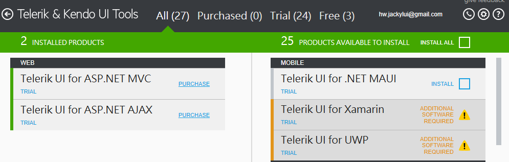 Telerik UI for Asp.net MVC and AJAX have been installed in my destkop.