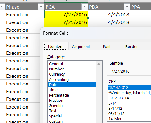 if we take a look to those columns displaying dates, then we select any of these cells, right click, "format cell"