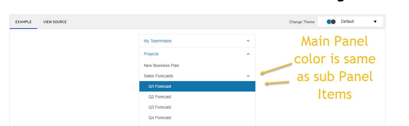 For example, when I click on Q1 Forecast I would like it be Red to give a visual indication that you have selected a sub item. Sales Forecast should remain Aqua Blue which is set from the Theme.