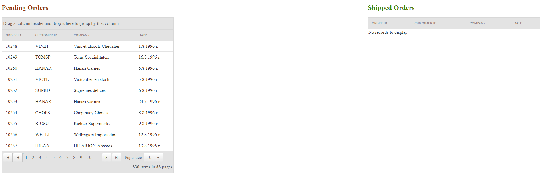 I'm afraid this functionality is beyond the built-in capabilities of the Grid, as only the rows are selectable/draggable across another Grid, however, the closest scenario to this would be to have the rows already grouped, then select them, and after that move them to the new Grid: