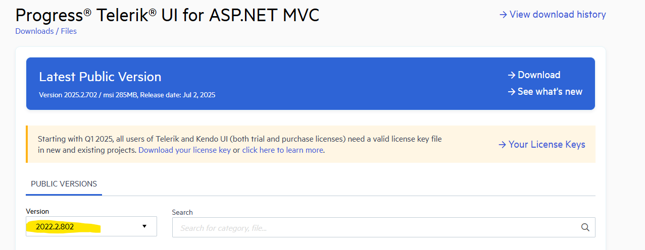 2. Is it possible to see which versions a component is supported for on the Telerik documentation website?