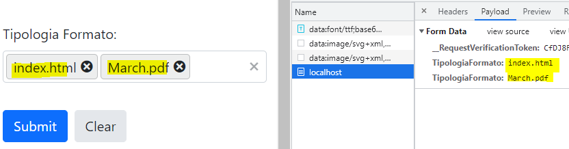 The component loads the data correctly but if I select multiple values it binds me to only one value in "TipologiaFormato" present in the model.